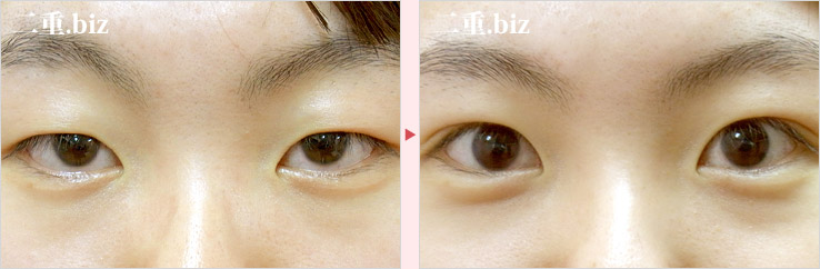 症例経過:目が開き難いために、眉毛を常に上げて、視野を確保していた症例です。眼瞼下垂と考えられましたが、どうしても切りたくないということで、切らない眼瞼下垂手術を希望されました。切らない眼瞼下垂手術により、開眼が良好になり、視野の確保が出来るようになりました。また眉毛の位置が下がり、美容的にも印象が良くなりました。